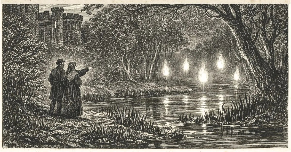 W dawnych przekazach błędne ogniki bywały łączone również z miejscami pochówków. Nie dlatego, że cmentarze postrzegano jako źródło samych zjawisk, lecz dlatego, że często lokalizowano je na obrzeżach osad — na gruntach podmokłych, nieużytkach lub terenach o trudnych warunkach glebowych. To właśnie tam, na styku świata żywych i przestrzeni wyłączonej z codziennego użytku, pojawiały się relacje o światłach widywanych nocą. Z czasem skojarzenie bagna, cmentarza i „błąkających się dusz” zaczęło funkcjonować jako jeden wspólny obraz kulturowy, utrwalany przez ludowe opowieści.