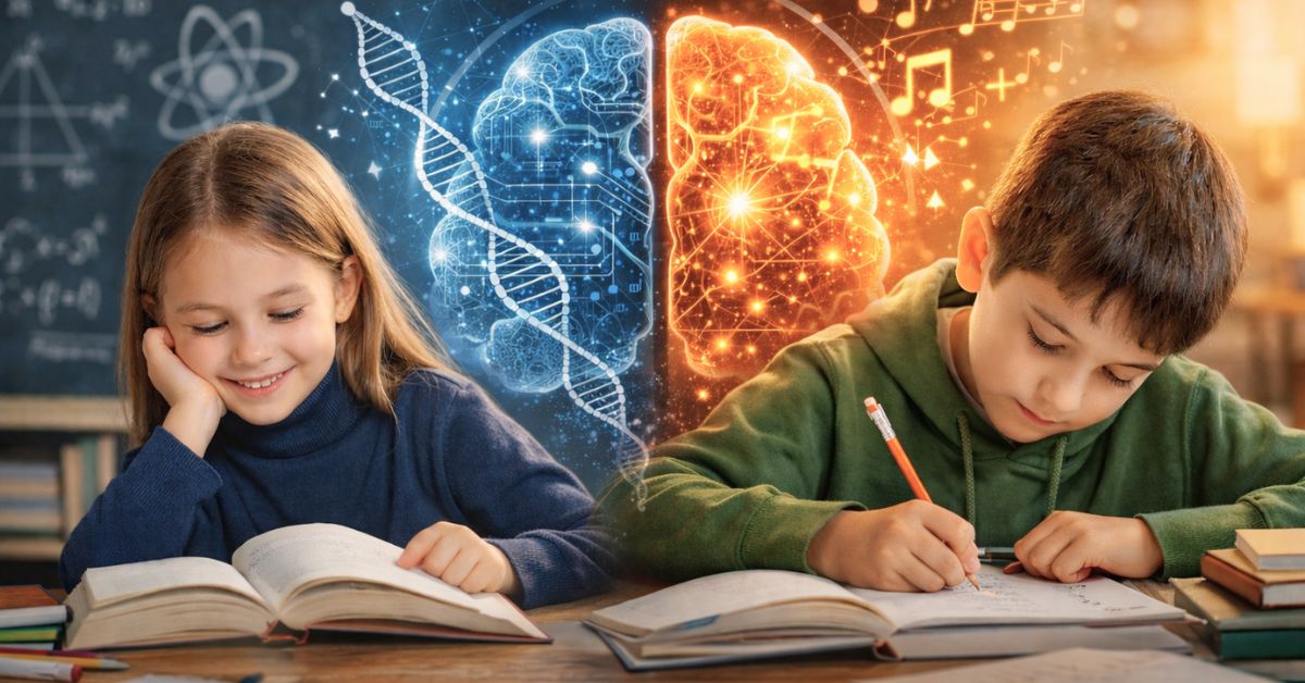 W badaniach nad inteligencją i zdolnościami poznawczymi powraca jeden wniosek: różnice między ludźmi są w zauważalnym stopniu związane z genetyką, choć nie w sposób prosty („jeden gen = jeden talent”). Klasyczne podejście (bliźnięta jednojajowe vs dwujajowe, adopcje) sugeruje, że dla cech związanych z ogólną sprawnością poznawczą odziedziczalność bywa średnio wysoka, a w miarę dorastania rośnie.