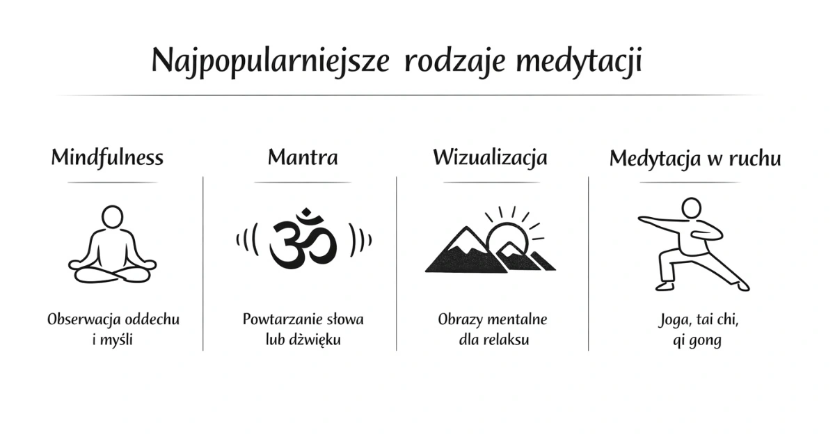Medytacja nie jest jedną, sztywną techniką. To raczej szeroka grupa praktyk, które różnią się przebiegiem, celem i stopniem aktywności. Niektóre pomagają lepiej zauważać własne emocje, inne uczą stabilizacji uwagi, a jeszcze inne wspierają relaksację lub rozwijanie życzliwszego nastawienia wobec siebie i innych. W praktyce termin „medytacja” bywa używany zarówno wobec klasycznych ćwiczeń w bezruchu, jak i technik opartych na ruchu, oddechu lub wizualizacji. Warto więc poznać kilka podstawowych form i sprawdzić, która z nich najlepiej odpowiada Twoim potrzebom.